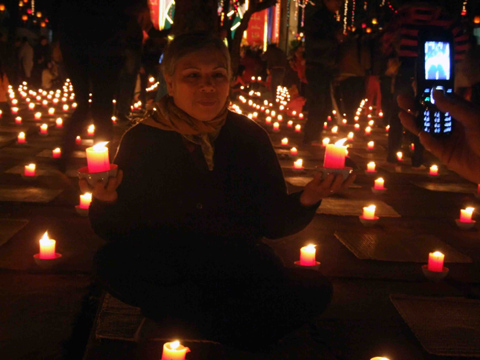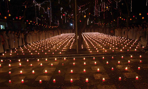 | Hàng ngàn ngọn nến được thắp sáng trong khuôn viên chùa để mừng ngày Đức Phật thành đạo |