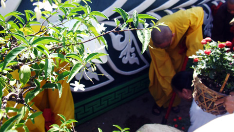 | Học cách pha trà ở chùa Quan Âm, Cần Thơ. |